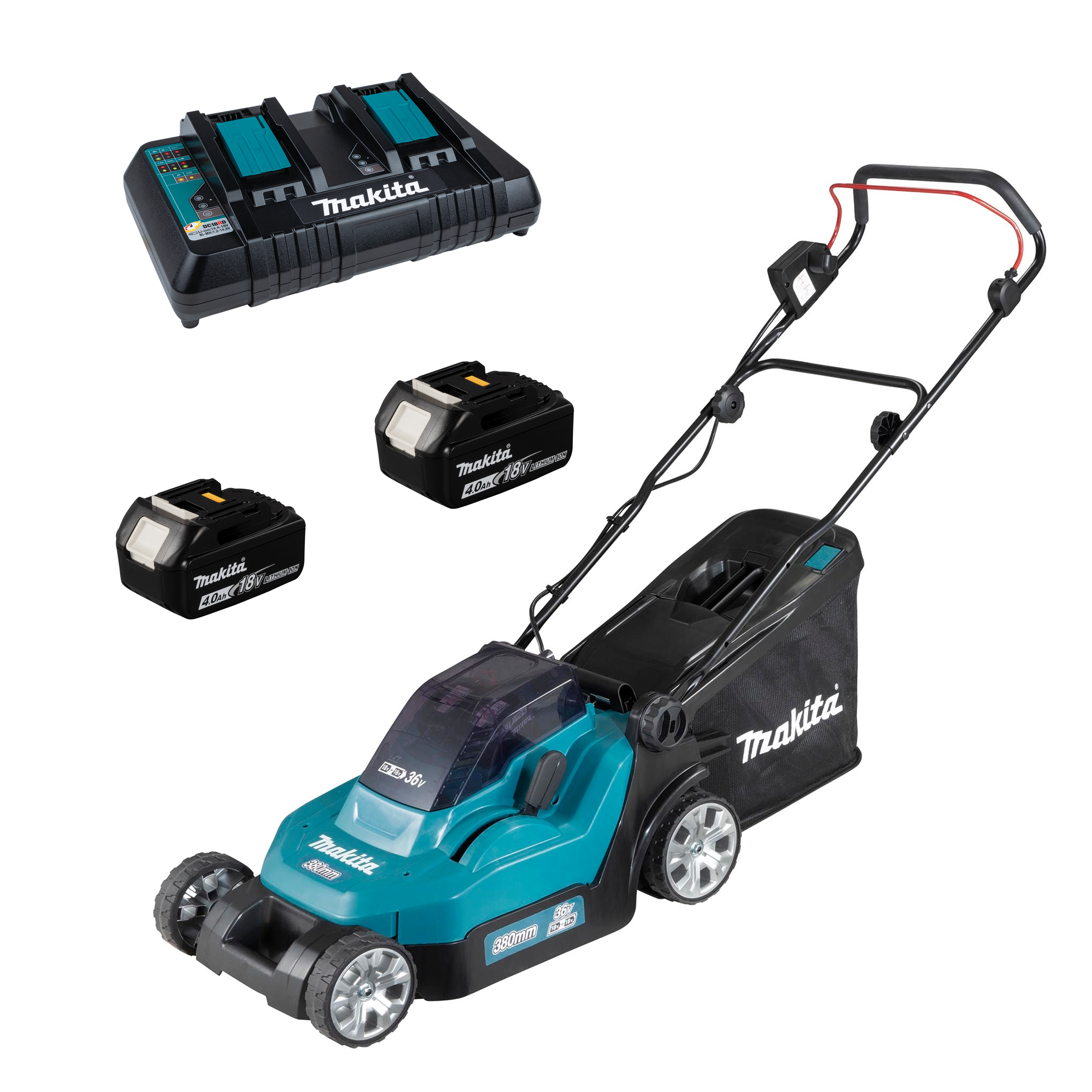 Makita DLM382PM2 Akku-Rasenmäher 18V 2x 4,0 Ah Akku + Lader im Karton